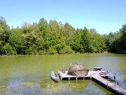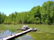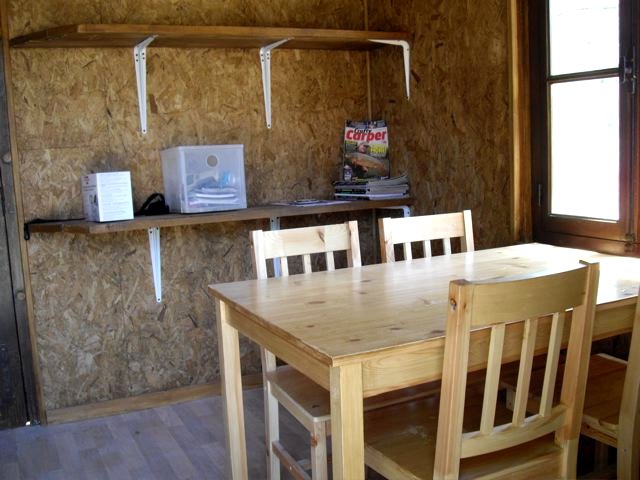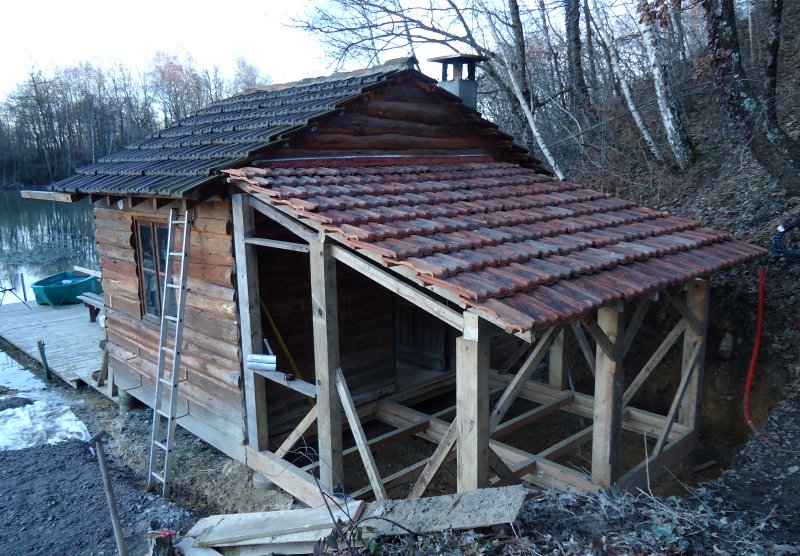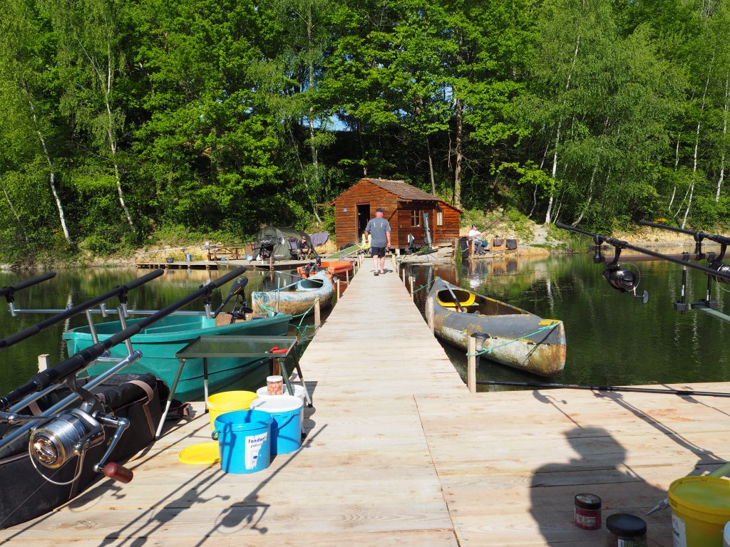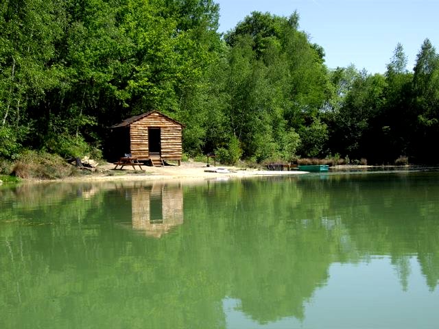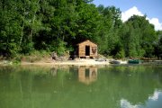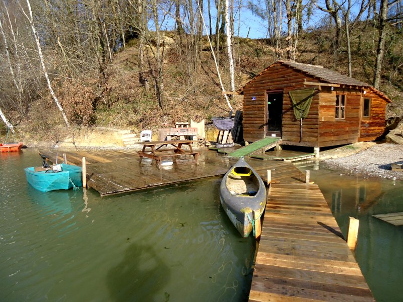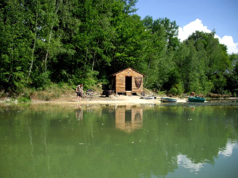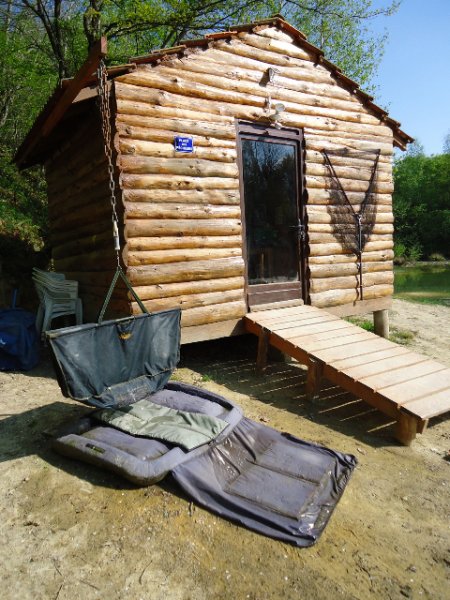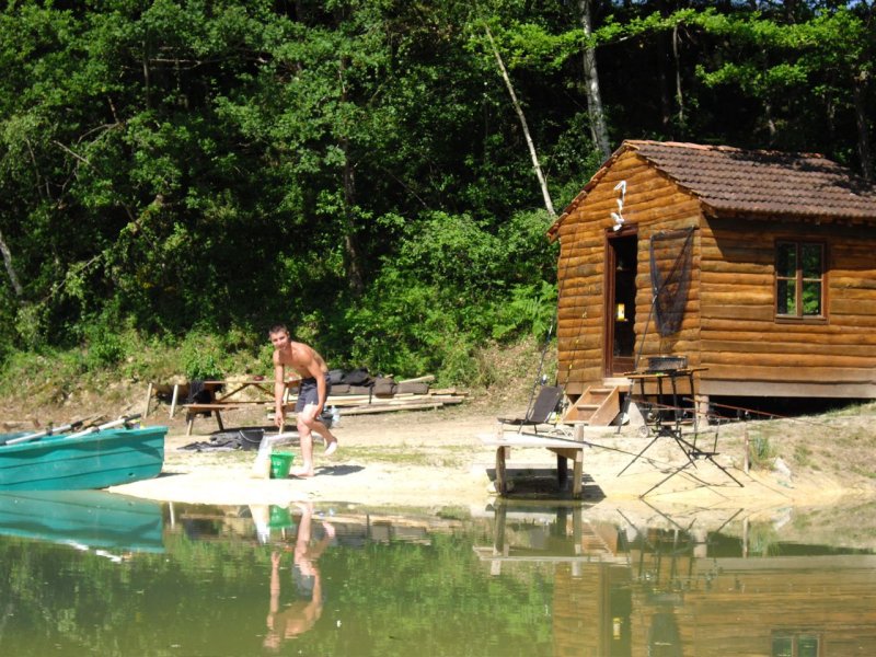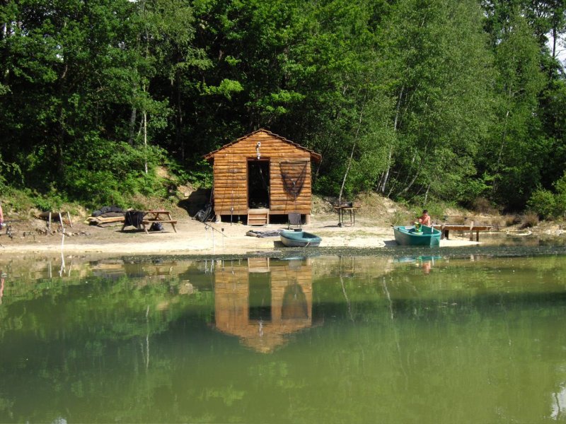A chalet has been recently built of the shore of the lake near the main fishing spot. A pontoon is now available to access the small island and it is now possible to fish more easily on the whole lake. Furthermore, a weighting setup has been built near the chalet.