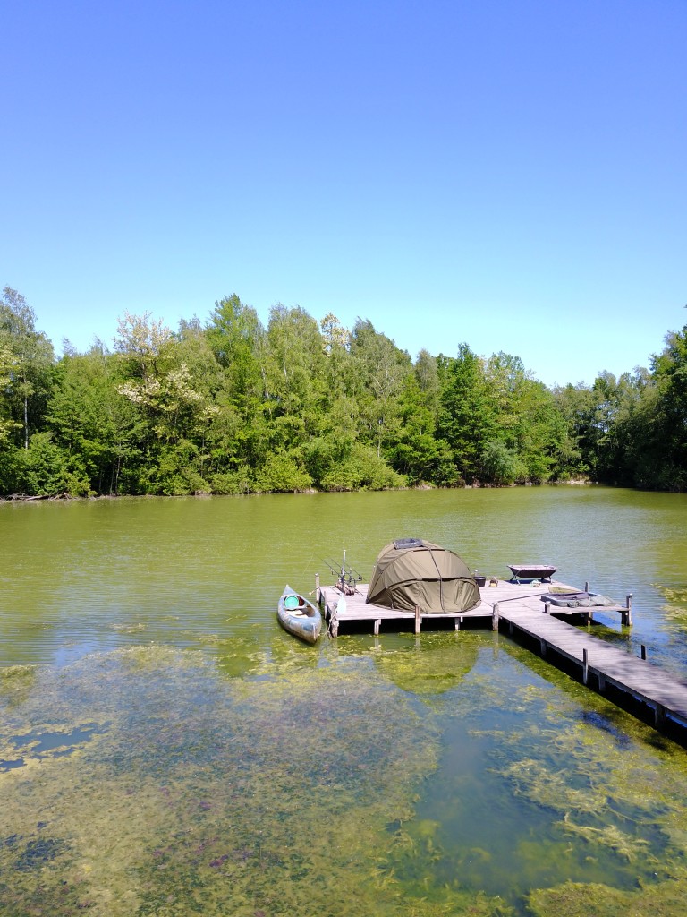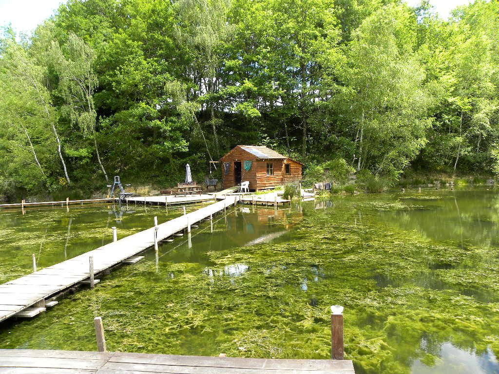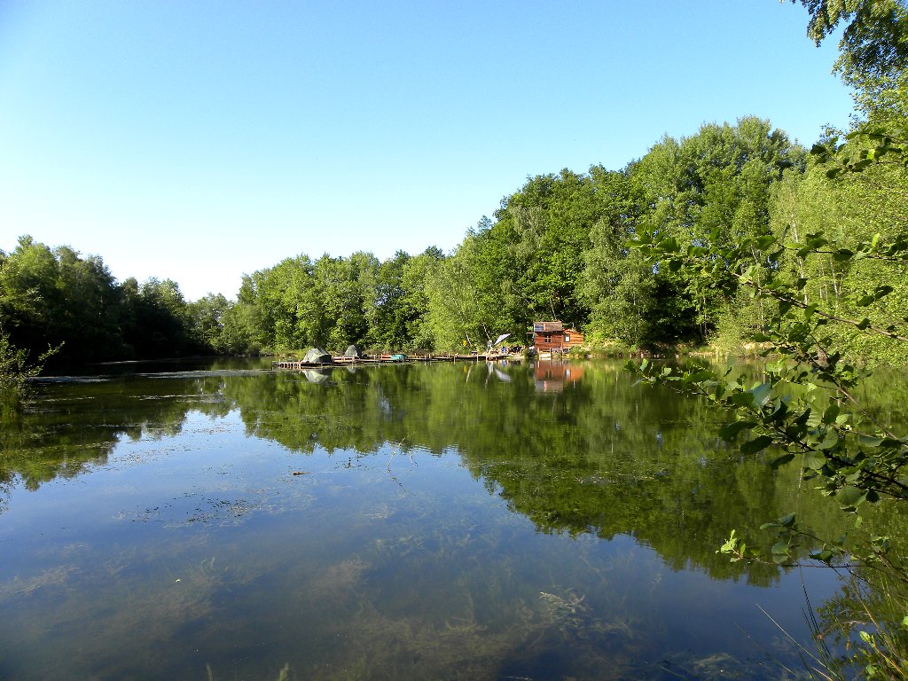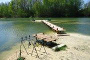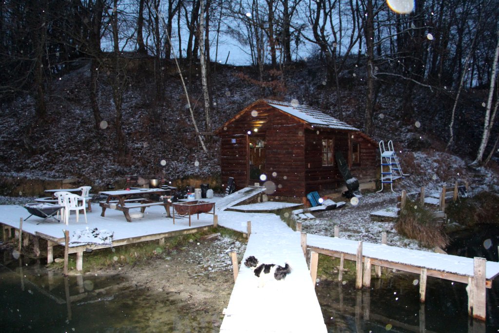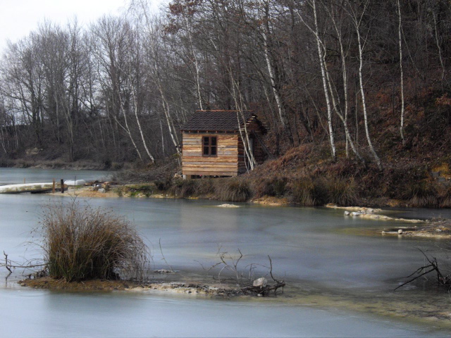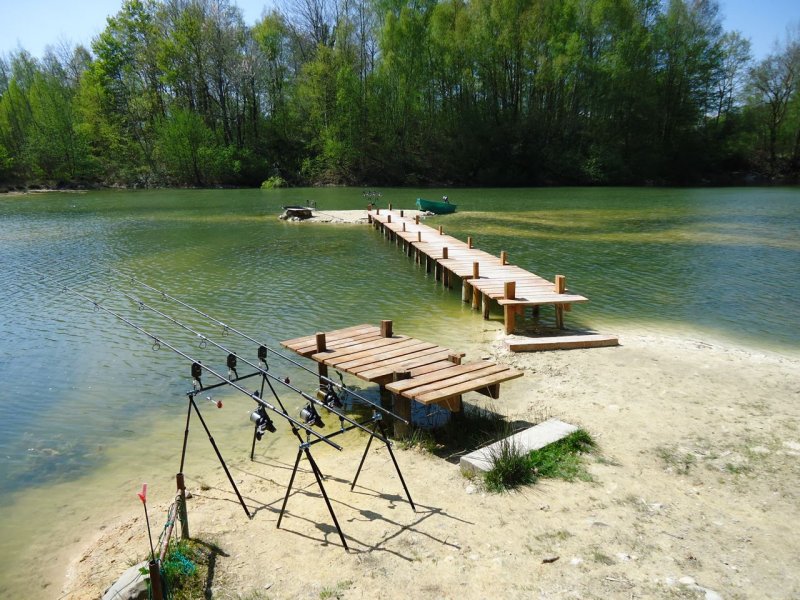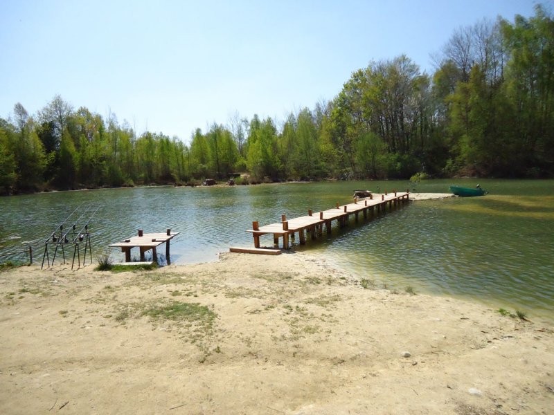 A chalet has been recently built of the shore of the lake near the main fishing spot. A pontoon is now available to access the small island and it is now possible to fish more easily on the whole lake. Furthermore, a weighting setup has been built near the chalet.