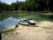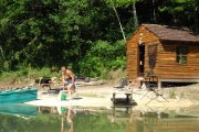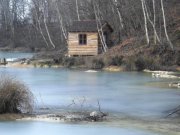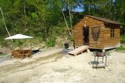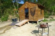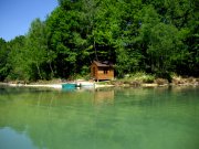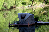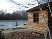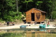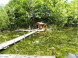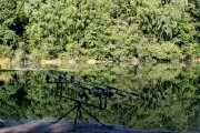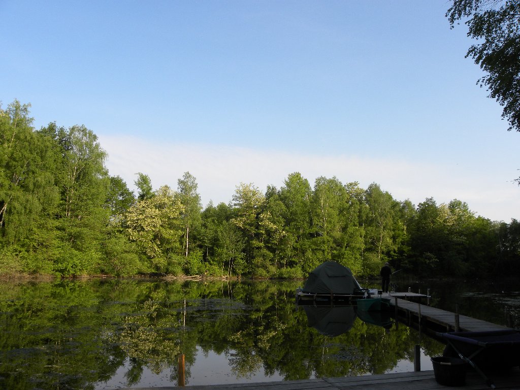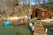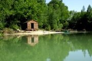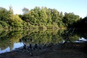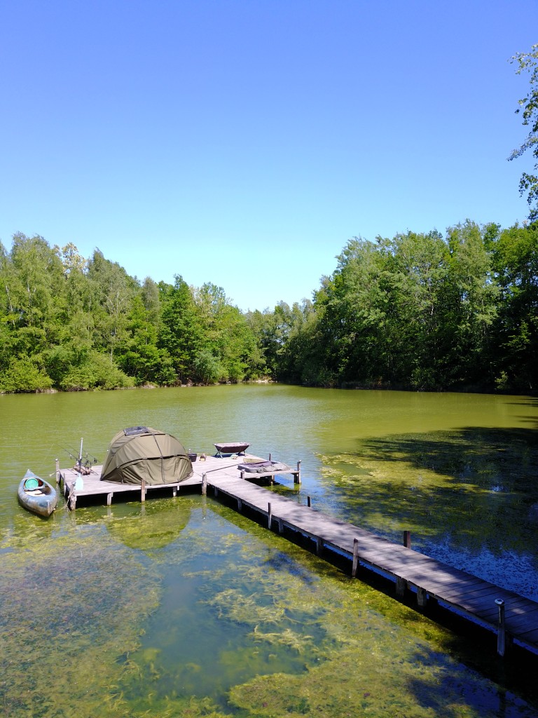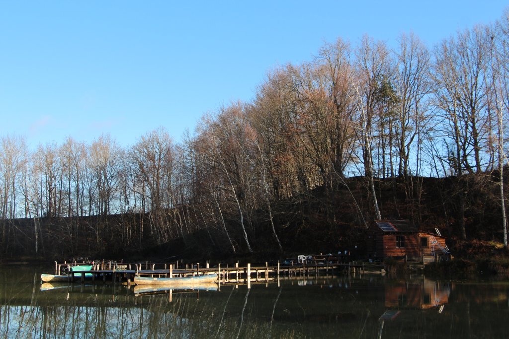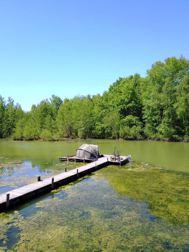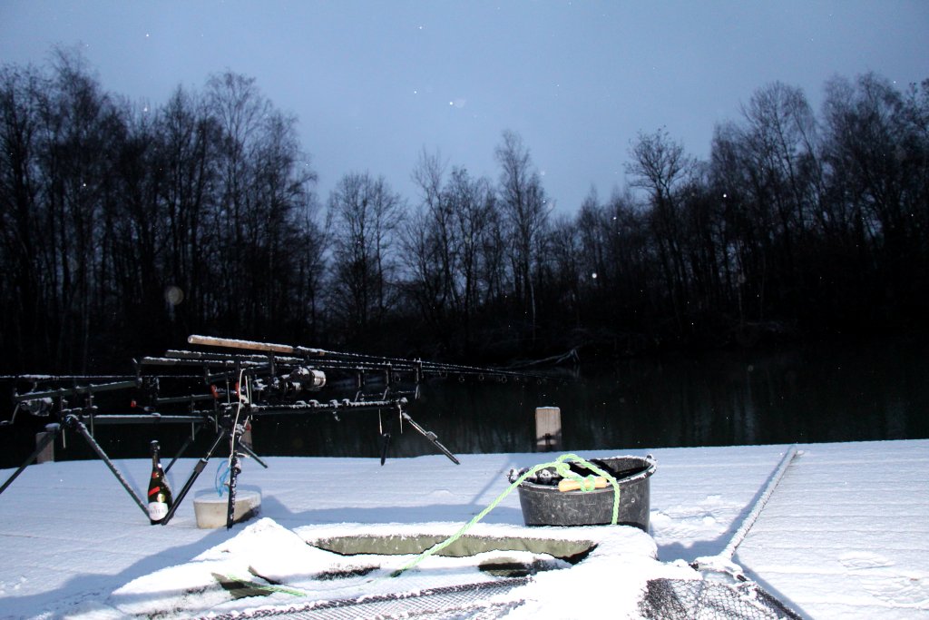 A chalet has been recently built of the shore of the lake near the main fishing spot. A pontoon is now available to access the small island and it is now possible to fish more easily on the whole lake. Furthermore, a weighting setup has been built near the chalet.
