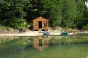 This page displays pictures of the chalet recently built, a few pictures from the venue as well as some videos. You will also find miscellaneous pictures related to the lake as well as sky views of the lake and a site map. A short explanatory text can be displayed simply by positioning the mouse cursor on each picture. To enlarge pictures, simply click on them.